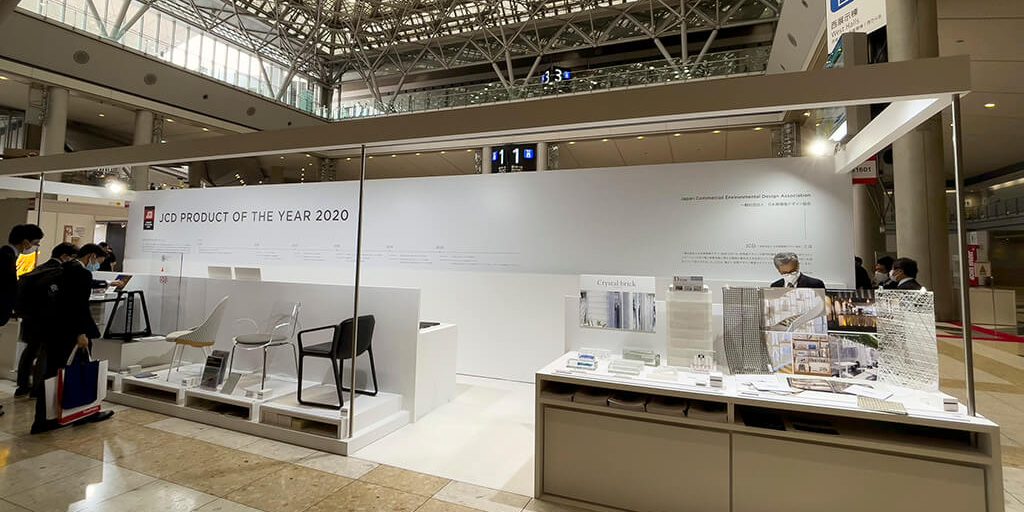 今回の参加は、日本商環境デザイン協会JCDプロダクトオブザイヤー受賞商品の紹介ブース。毎年、数十の商品がJCD会員の400人を超える空間デザイナー・建築家の投票により選抜されるこの賞でKEIMコンクレタールが2020年に上位入賞した事を受けての、共同出展でした。