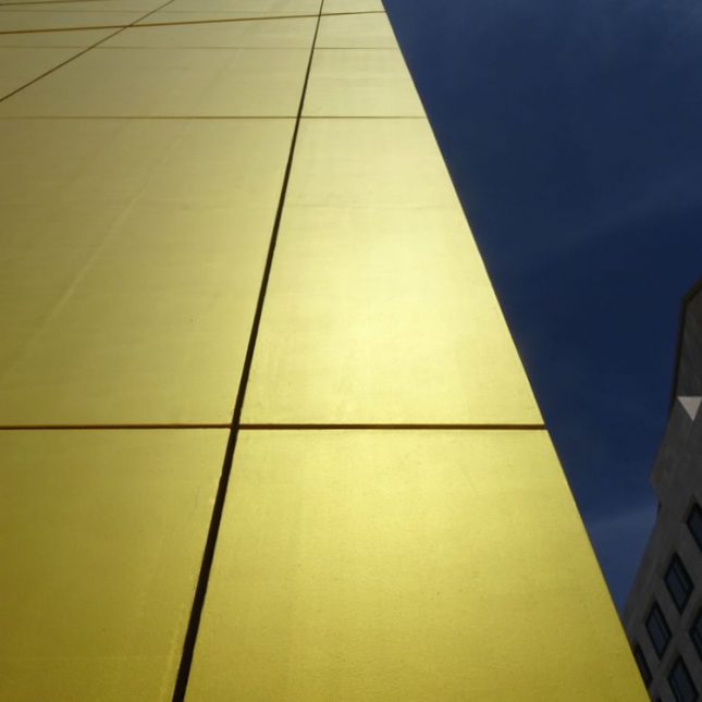 特に、「CHROMA」の外装はこだわりを持って金色に塗装されている。MVRDVの代表ヴィニー・マース氏によれば、仁川空港の上空でこれを目にした乗客を暖かく迎える「太陽」のイメージだという。結果、「CHROMA」は太陽光を効果的に受ける正面を中心に、カーテンのようにドレープした入口に至るまで、カイムのロイヤラン(#O-1001、ゴールド)で完璧に塗装された。
